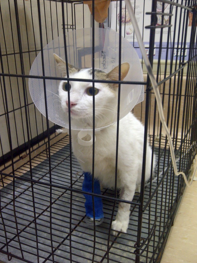MAMA J dibawa ke Healing Rooms di Subang untuk mengeluarkan nanah di lehernya. Nanah ini kemungkinan akibat dicakar kucing lain.